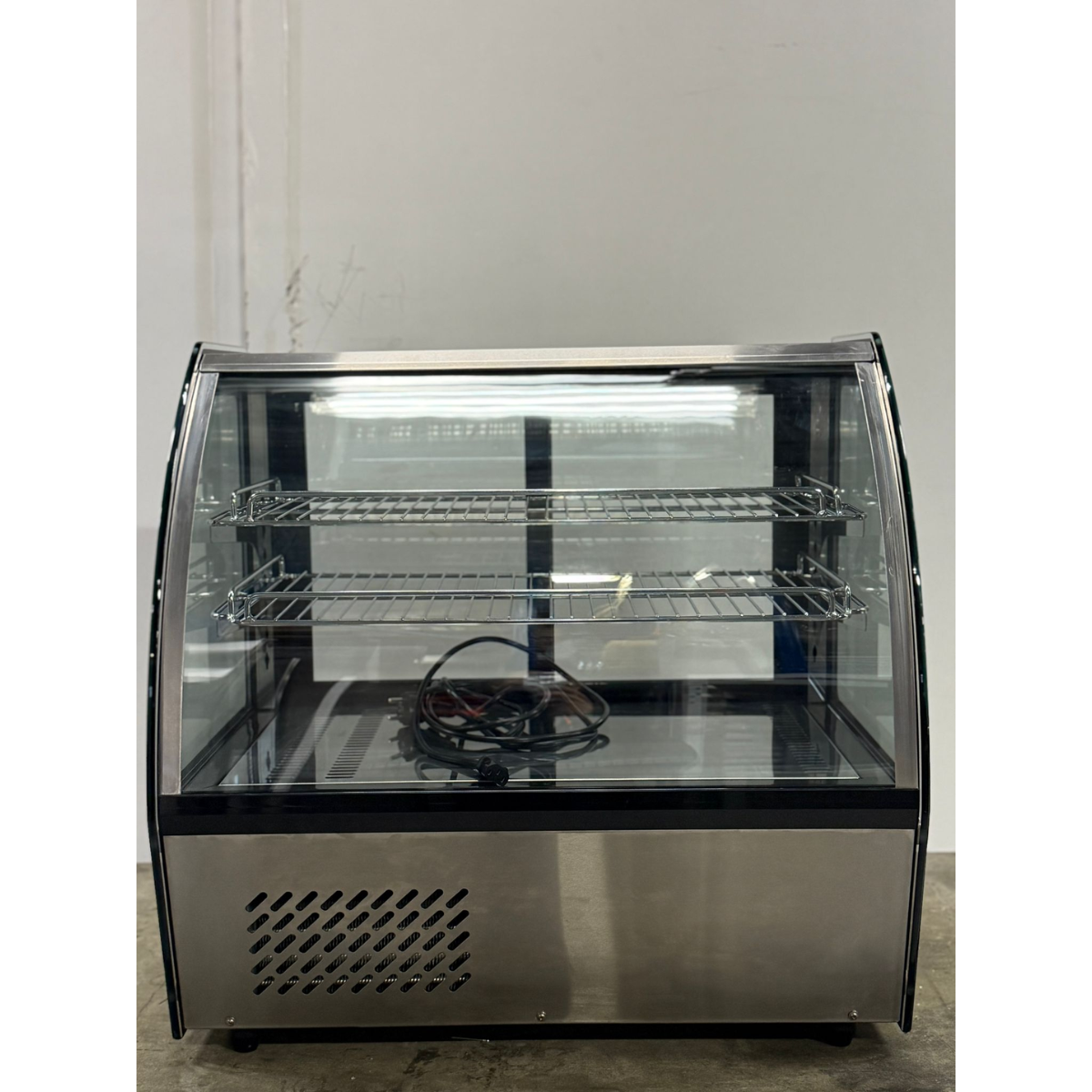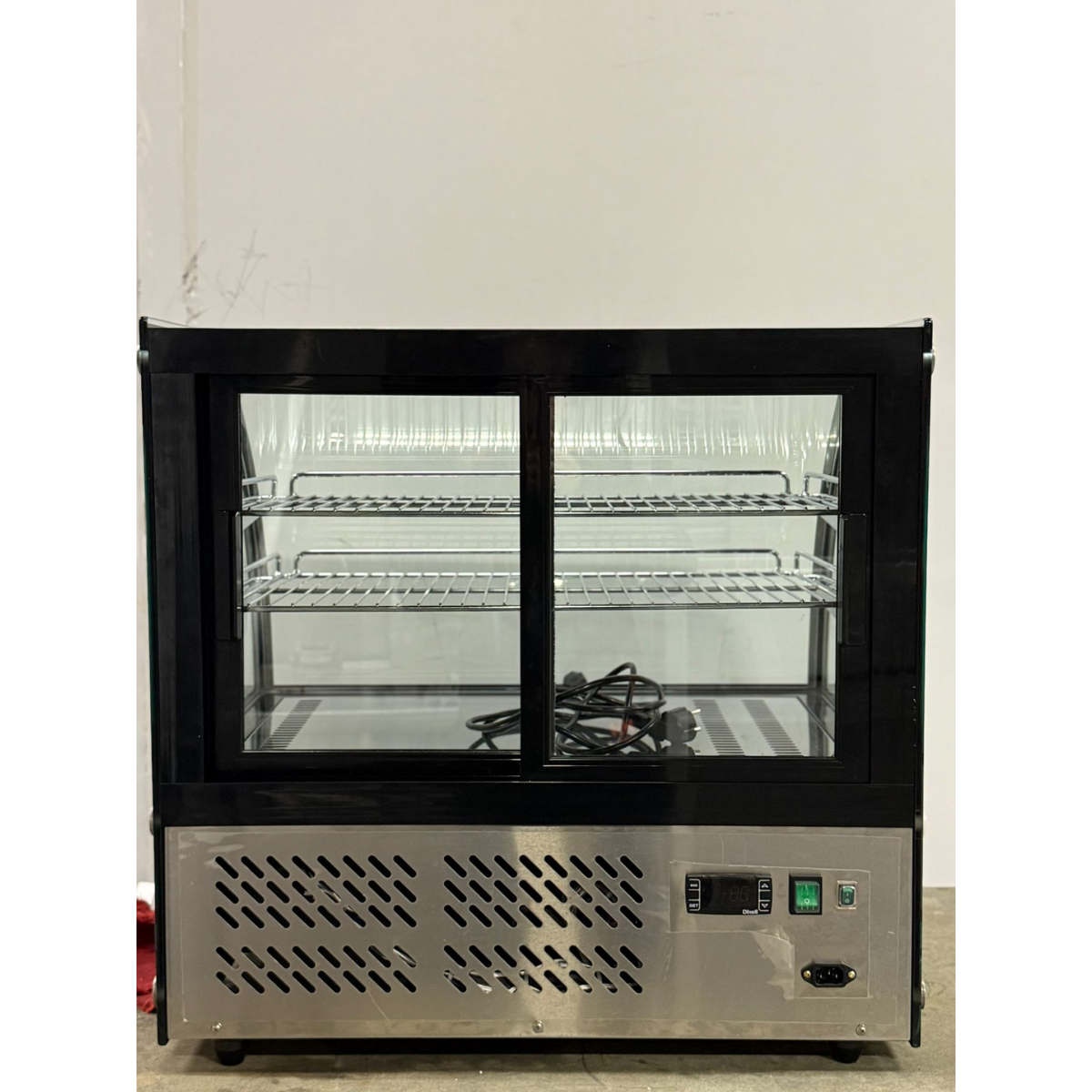 Käytetty pöytämallinen kylmävitriini sopii loistavasti kahviloihin, ravintoloihin ja myymälöihin. Kaareva etulasi ja lasiset sivupaneelit tuovat tuotteet selkeästi esiin ja tekevät vitriinistä visuaalisesti houkuttelevan. Sisätilan LED valaistus korostaa tuotteita ja parantaa myyntiä. Liukuovet laitteen takapuolella helpottavat täyttöä ja käyttöä kiireisessä arjessa. Laite on varustettu tuuletetulla jäähdytyksellä ja digitaalisella ohjauksella, mikä varmistaa tasaisen lämpötilan ja luotettavan toiminnan. Automaattinen sulatus ja kondenssiveden haihdutus vähentävät huollon tarvetta ja helpottavat päivittäistä käyttöä.