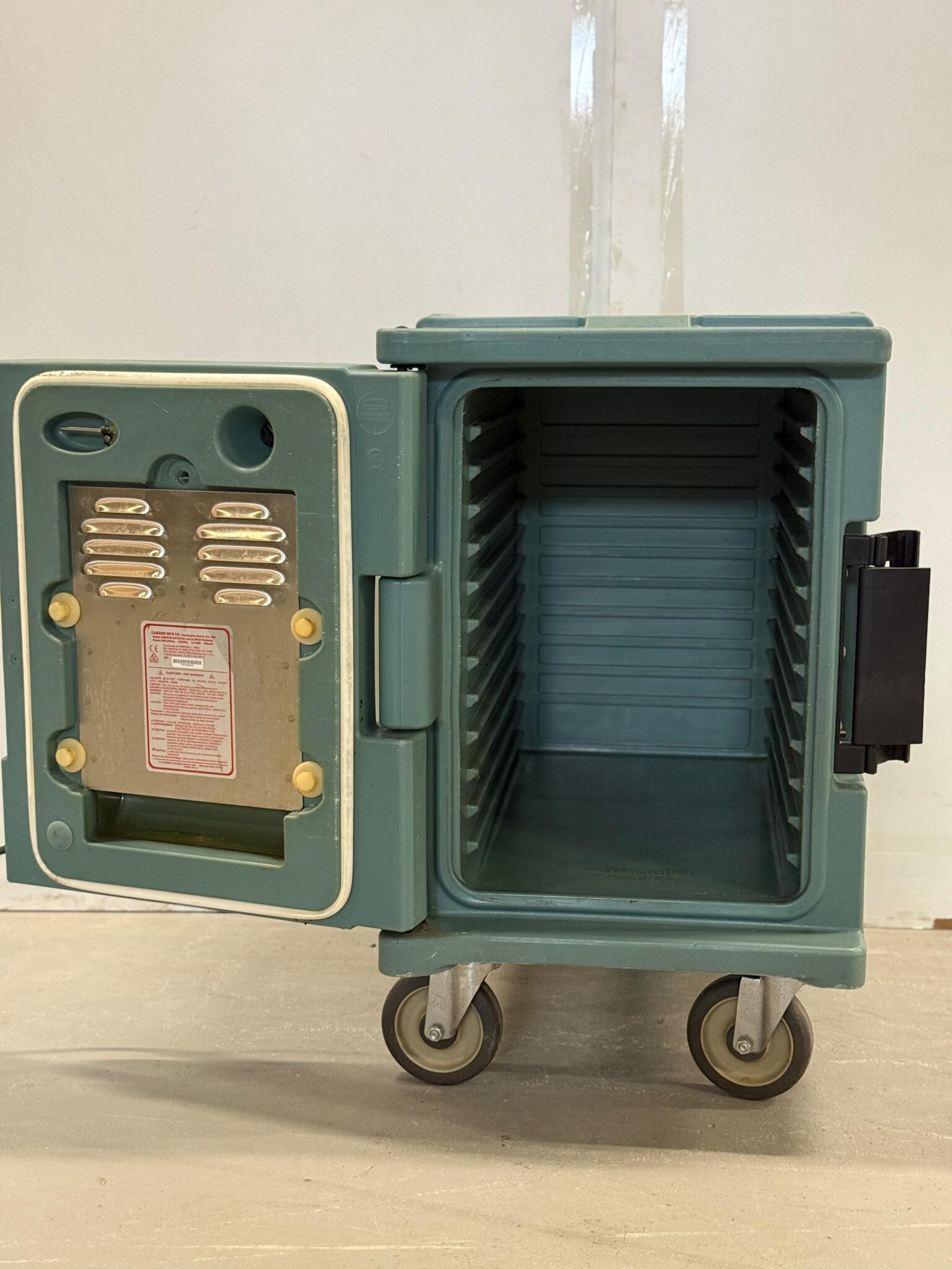 Vähän käytetty CAMBROn lämminkuljetusvaunu. Mitoitus GN1/1, tilaa neljälle 100mm syvälle astialle. Latausjohto kuuluu hintaan.
