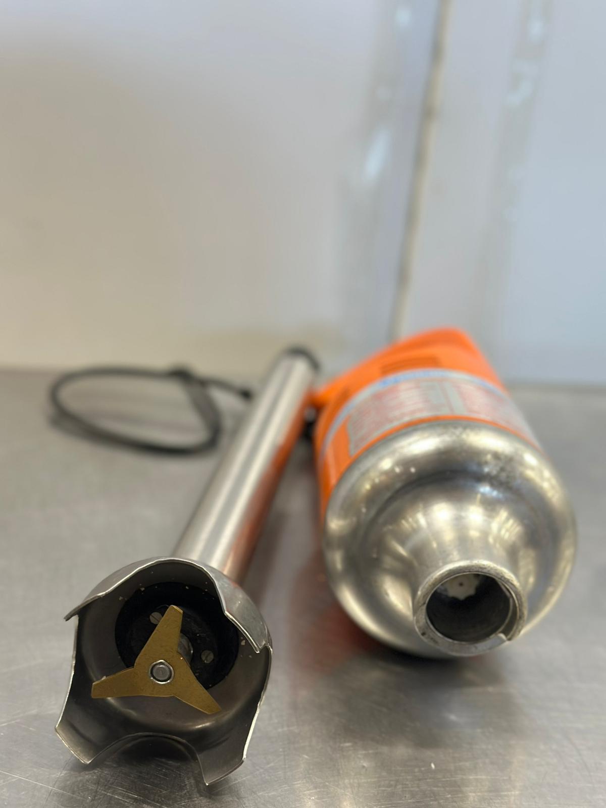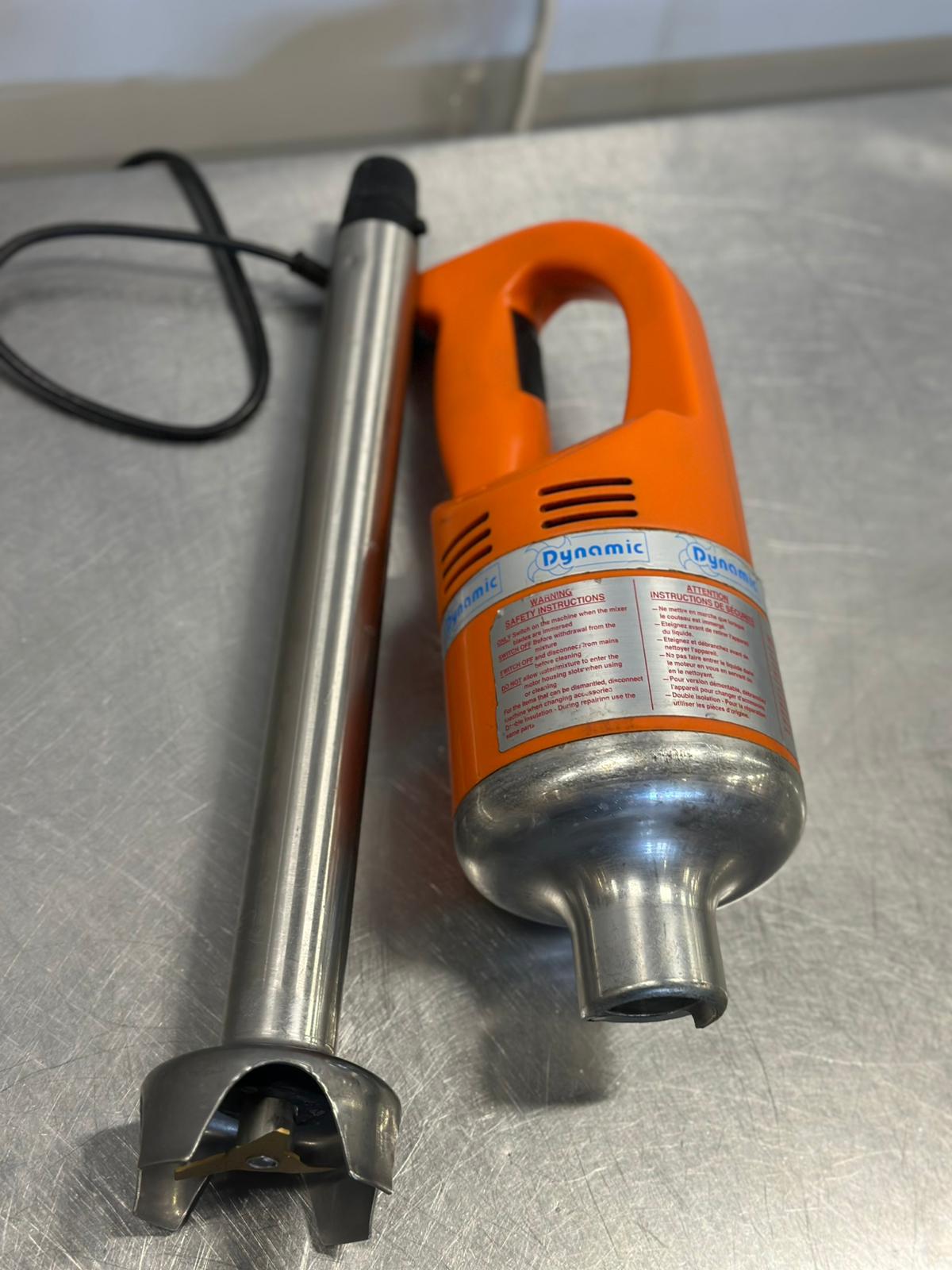 Vähäisellä käytöllä ollut Dynamicin sauvasekoitin. Irrotettava varsi helpottamaan puhdistusta.