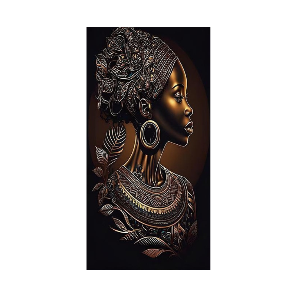Näyttävä 3D PVC-taidepaneeli, jossa lämminsävyinen musta ja kullanhohtoiset yksityiskohdat yhdistyvät voimakkaaseen, eleganttiin profiilikuvaan. Aurea tuo tilaan syvyyttä, arvokkuutta ja vahvan visuaalisen identiteetin – ilman perinteisen seinätaiteen painoa tai asennushaasteita.
