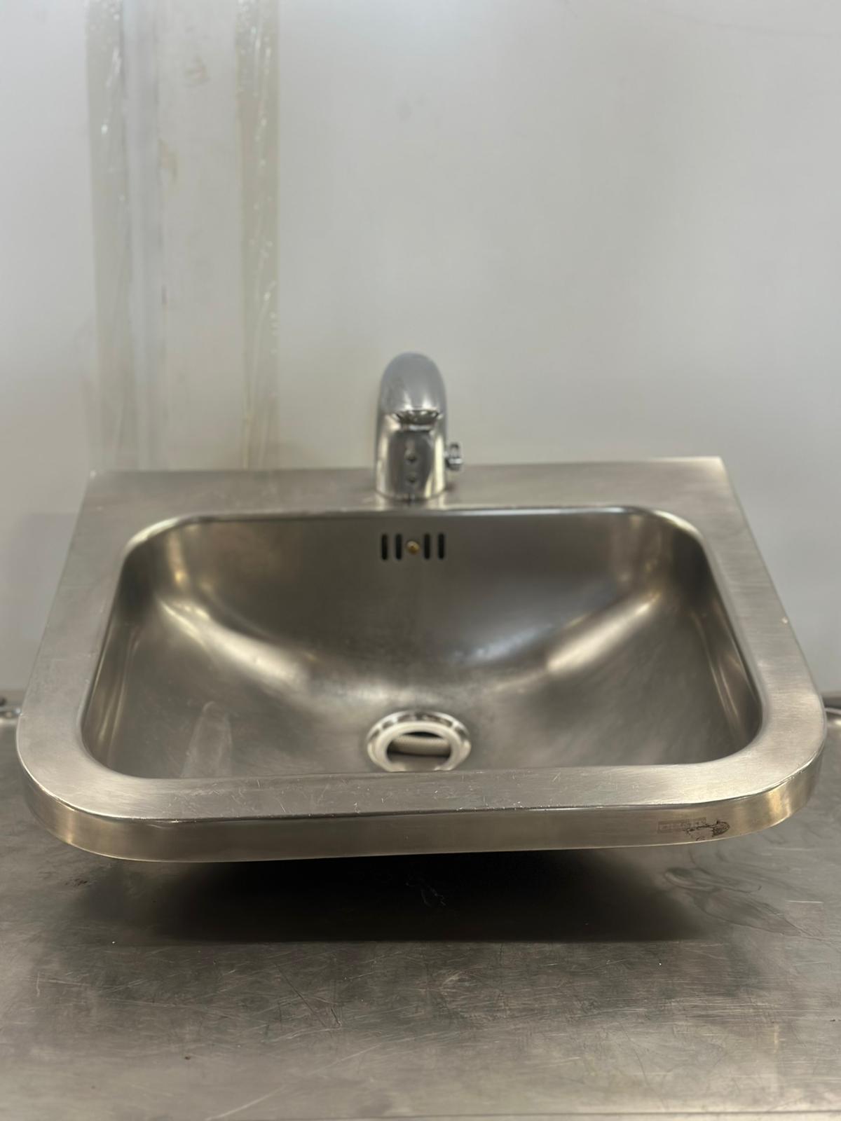Käsienpesuallas automaattihanalla. Seinäkiinnitys.