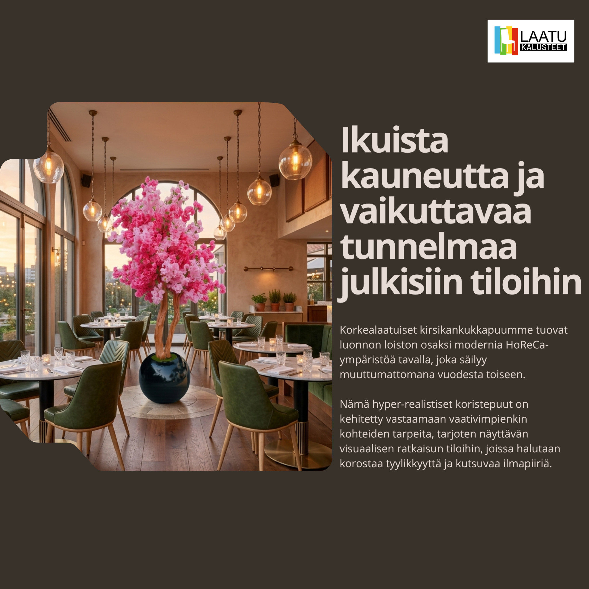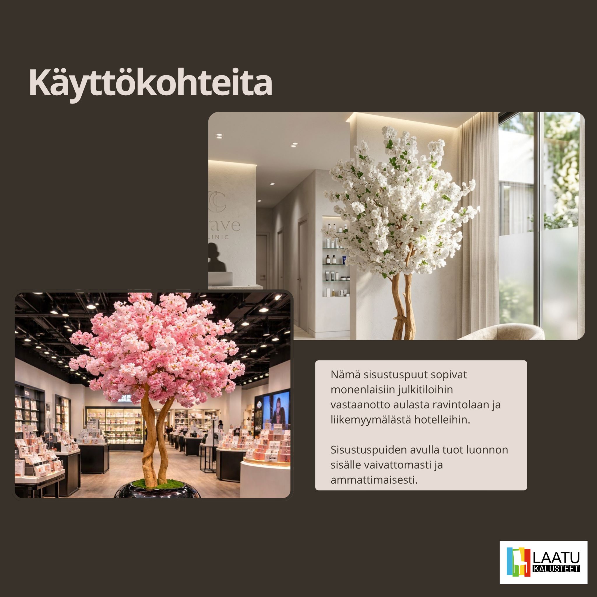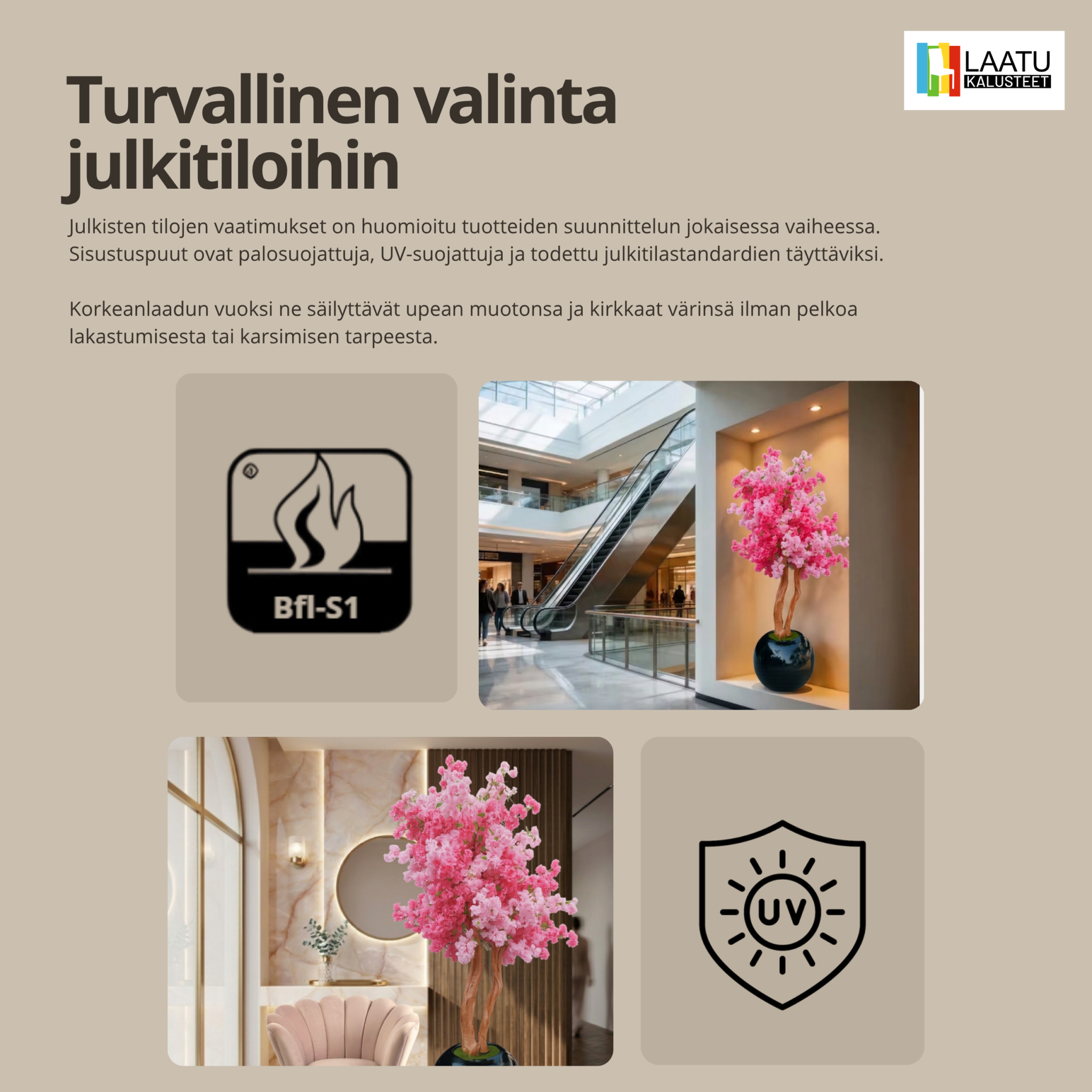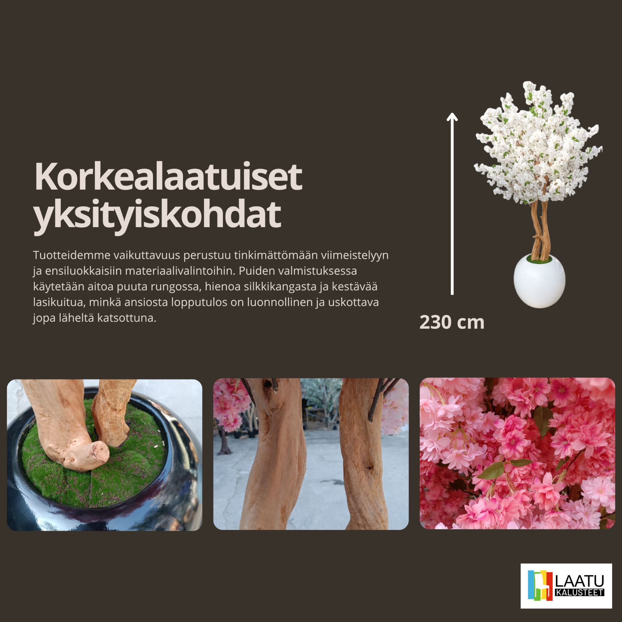 Runko on aitoa puuta. Kukat ja lehdet ovat laadukasta silkkiä, toimii myös akustiik-kaelementtinä esim.