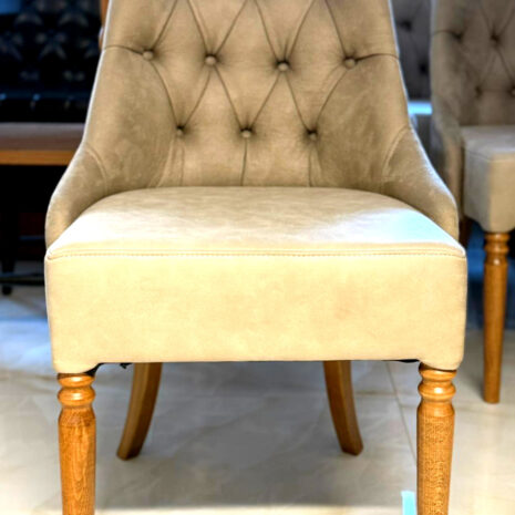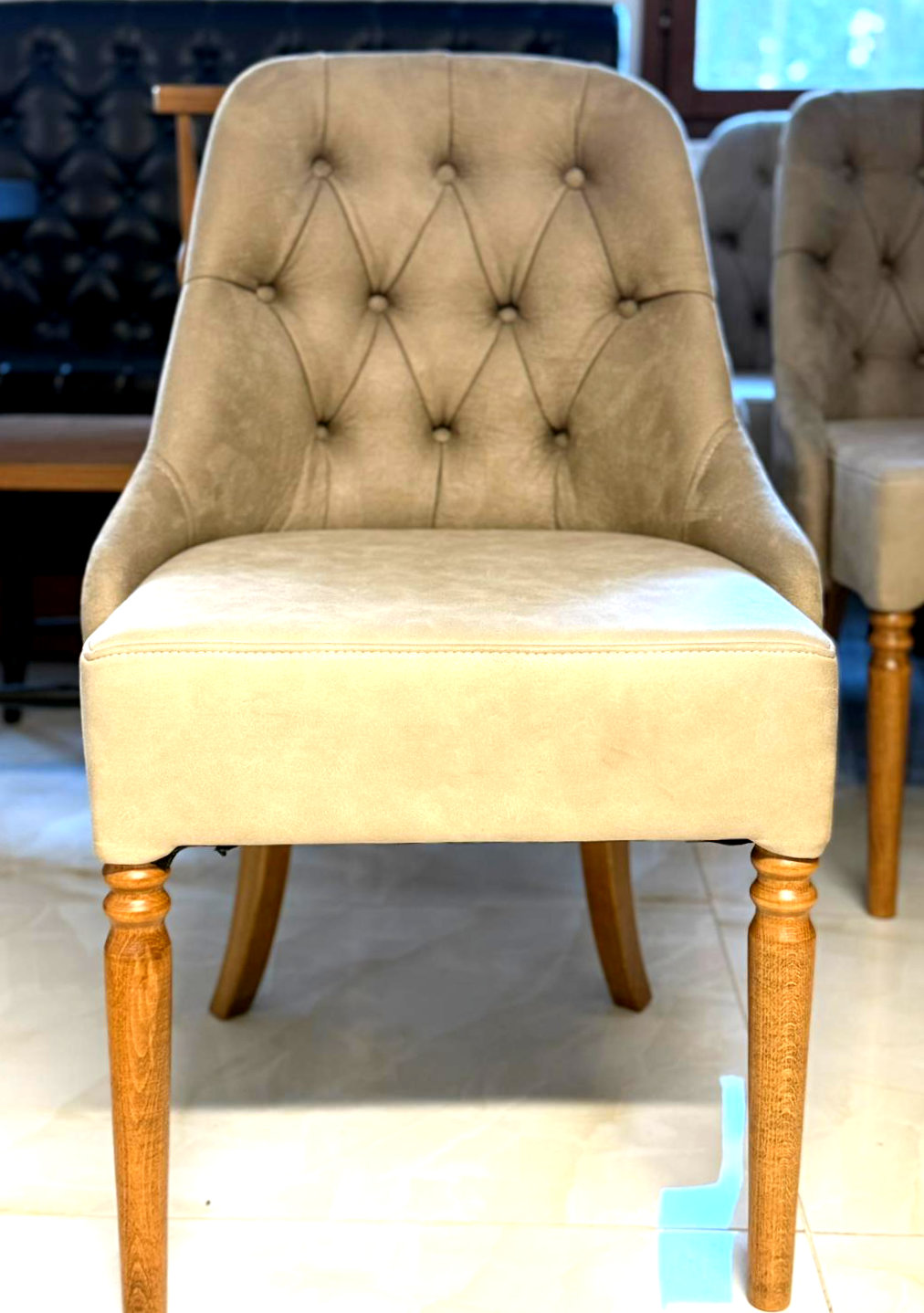Chesterfield-tyylisesti napitettu vaaleanviherä ravintolatuoli.