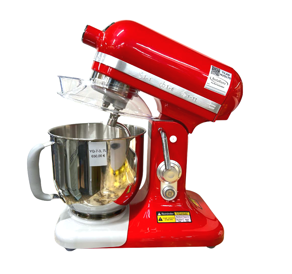 Toimitus sisältää vakiona RST-kulhon, -vispilän, -taikinakoukun ja -sekoitusmelan.